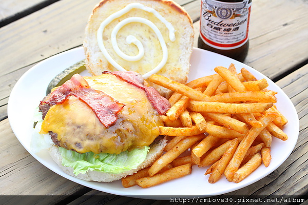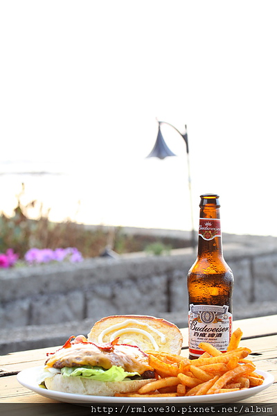 在海邊襯著夕陽,再配上啤酒與漢堡,說多爽快就有多爽快啦!!(大心)