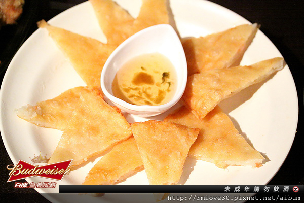 月亮蝦餅,整體來說不算厚,但因為可以不斷加點,所以還算是一道必吃美味小點