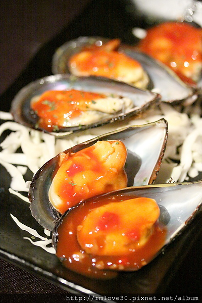 涼拌酸辣孔雀貝,鮮度還不錯,酸辣醬料搭上孔雀背不顯腥仍易入口