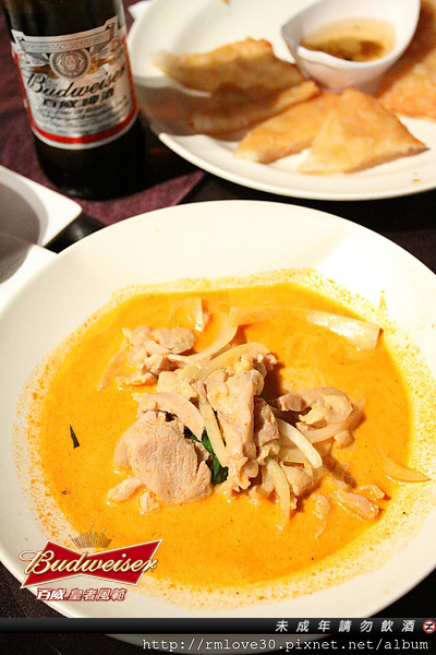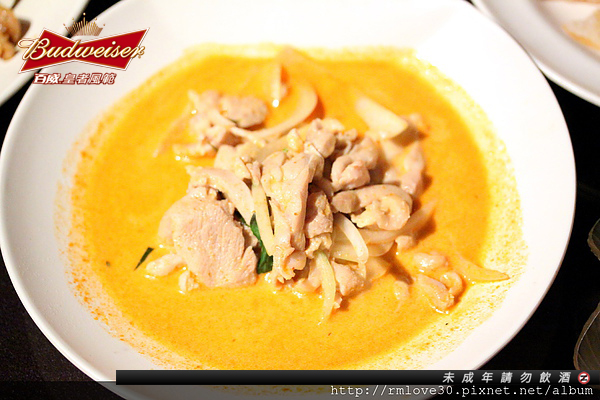 紅咖哩椰汁雞肉,香氣逼人的咖哩味,搭配有咬勁的雞腿肉