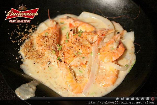奶油椰香炒蝦,重口味的椰汁風格,搭配新鮮的蝦很適合配啤酒